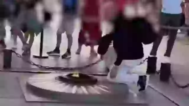 The gravesite is regularly surrounded by visitors, but in recent days one of those visitors crossed a line – literally – by stepping over the rope of the memorial and appearing to use the Flame of Remembrance to light a cigarette.