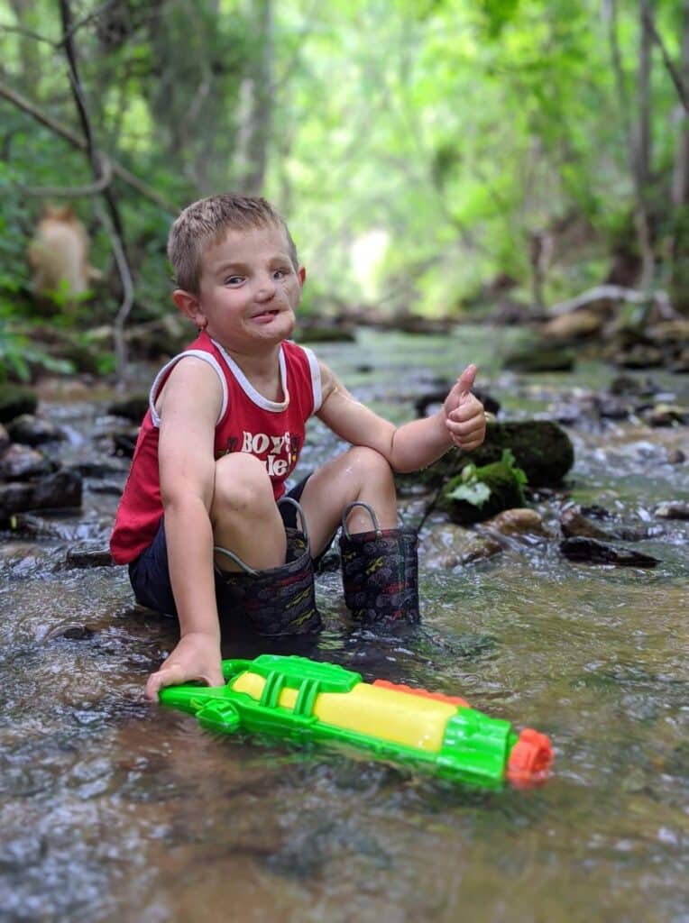 His mom, Brittany, says trips to the park and grocery store can be brutal—children have pointed and called him a “monster,” and a stranger once sneered “ew” as they passed.