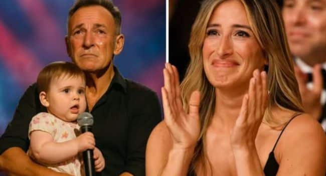 Between songs, Springsteen turned toward the wings and called softly, “Lily, say hello to everyone!” Then, to the crowd’s astonishment, he stepped forward — not with a Telecaster slung over his shoulder, but with his 3-year-old granddaughter, Lily Harper Springsteen, in his arms.